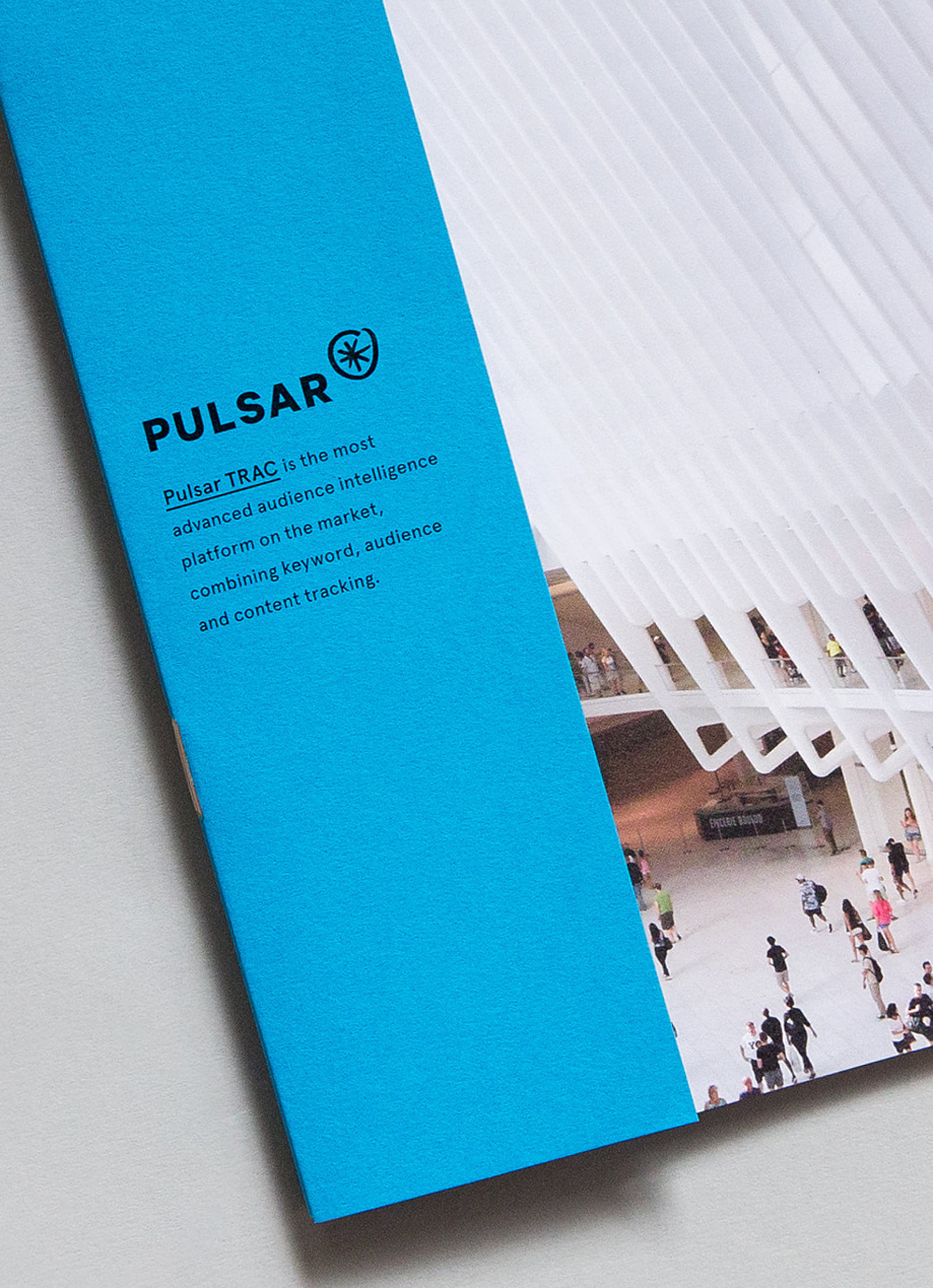 Pulsar is a tech company specialising in audience insight through social media analysis tools. I was commissioned to produce a complete rebrand including: a new logo, stationery, website, brand guidelines, multi-platform templates and printed reports.